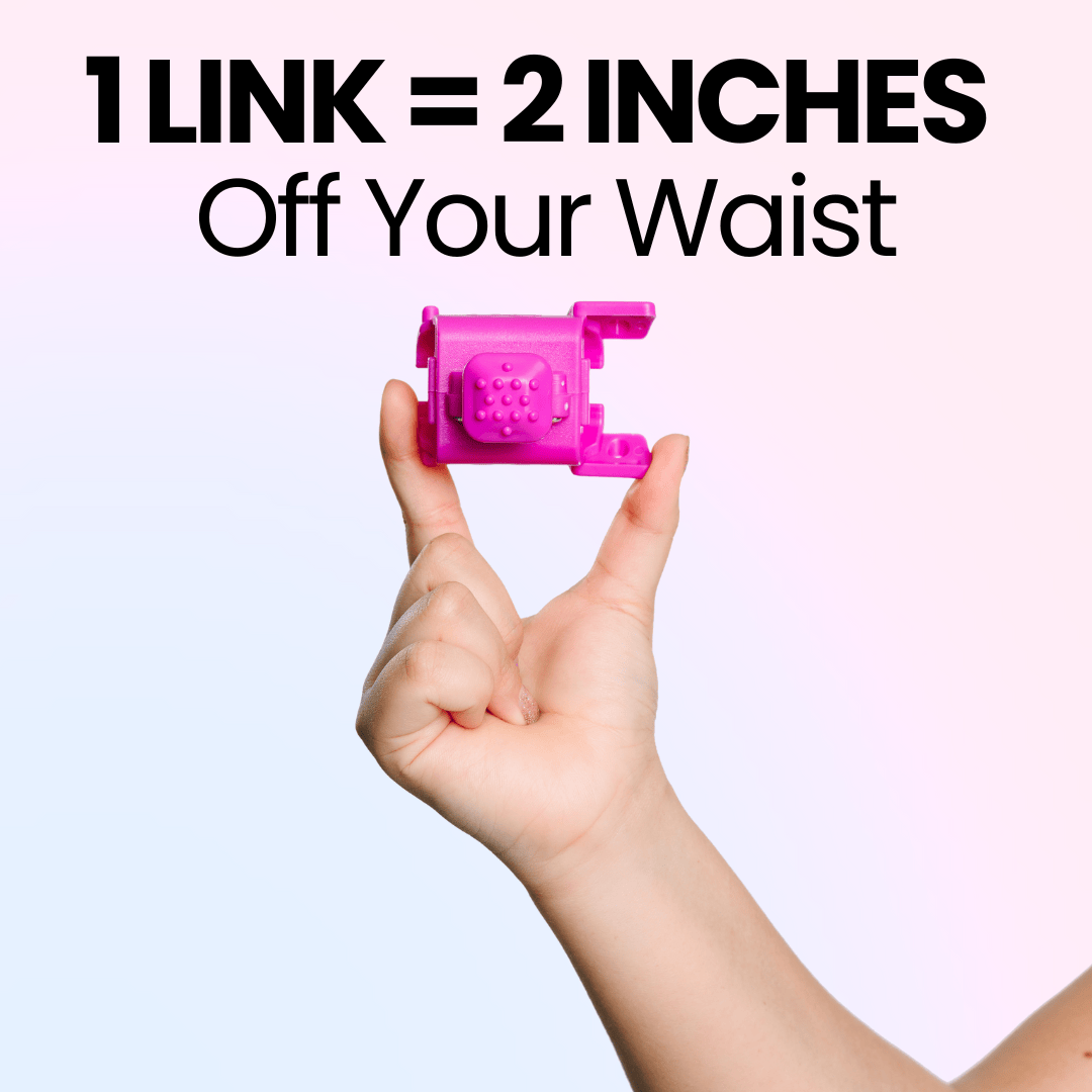 Track your progress by adding or removing links to match your evolving fitness objectives. Every link removed equals 2 inches!