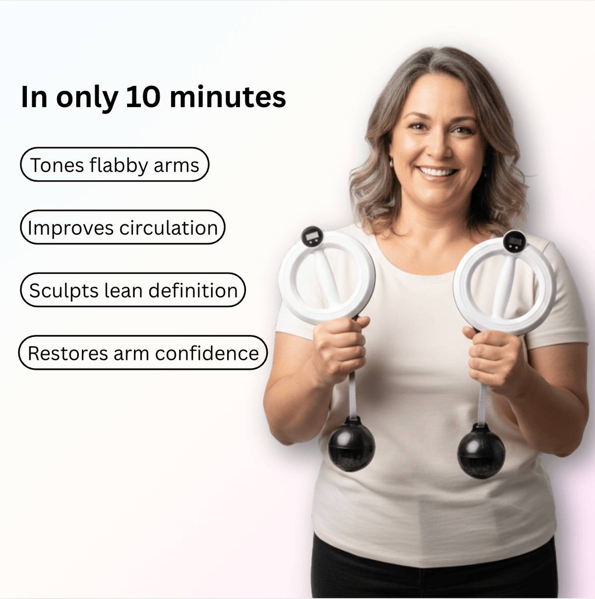 The Infinity Arm Hoop™ is designed to tighten, tone, and redefine your upper arms in just 10 minutes a day, without weights, gym memberships, or high-impact workouts.