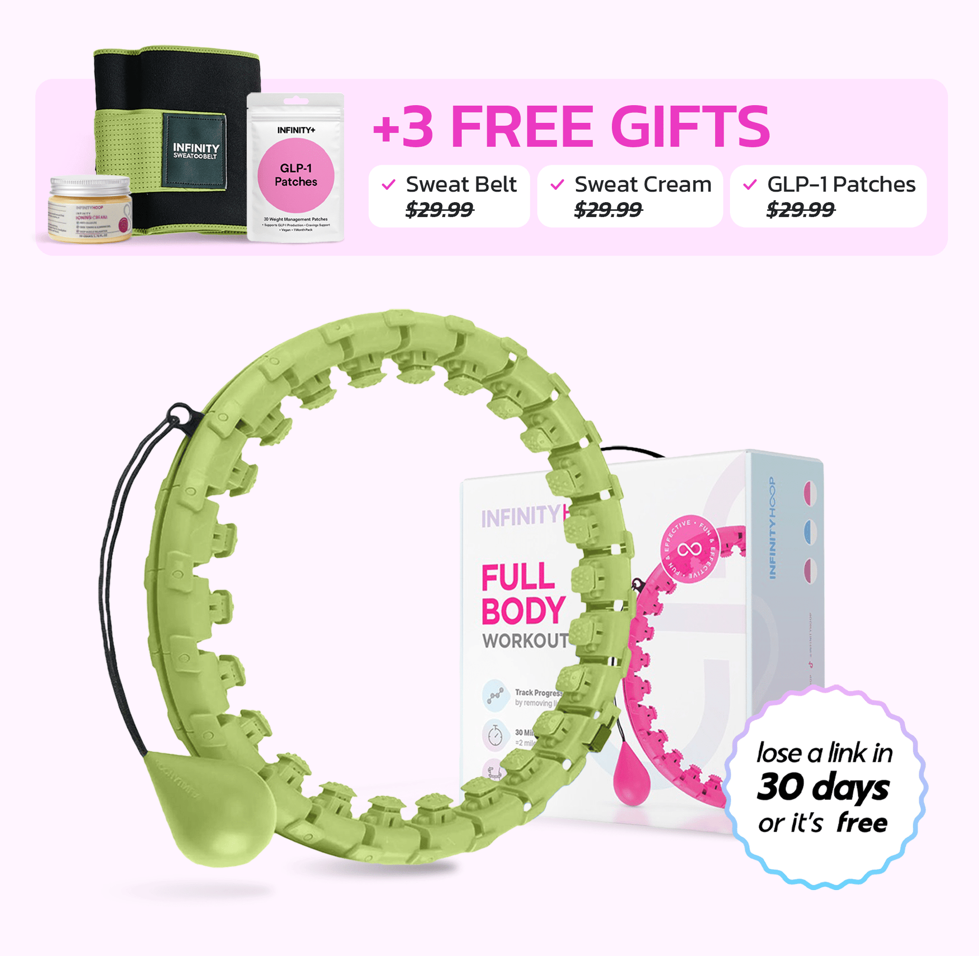 Infinity Hoop Plus combines fat-burning movement with GLP-1 patches that curb cravings and boost fullness. Burn calories while the patch helps your body stay on track—no needles, no hunger, just real results.